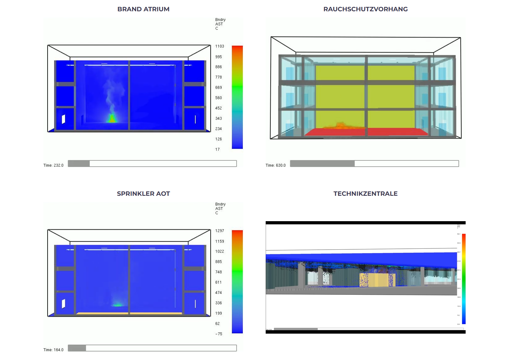 lm Rahmen einer Masterarbeit einer Mitarbeiterin unseres Büros wurde daher mittels Computersimulationen (FDS) untersucht, welche Brandschutzqualitäten bei der Abtrennung von Atrien zur Erfüllung der bauordnungsrechtlichen Schutzziele notwendig sind, wo Vereinfachungen möglich sind und welche Alternativen bestehen.